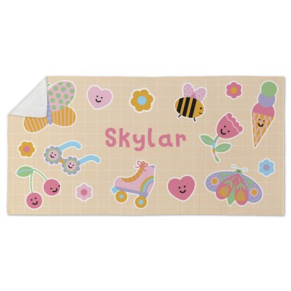 Get ready for fun, sun and a little nostalgia with this quirky, colorful towel. Featuring a mix of playful stickers, it’s the perfect addition to your beachside adventures.