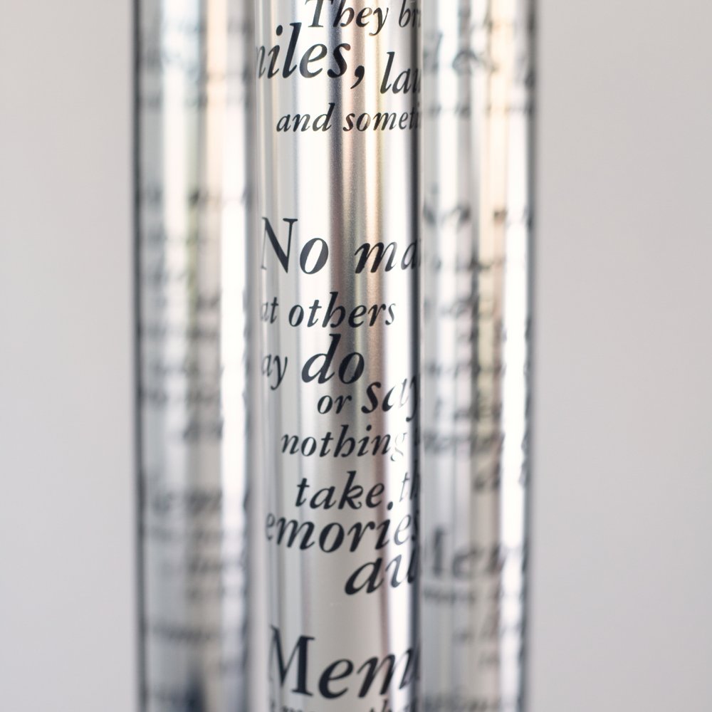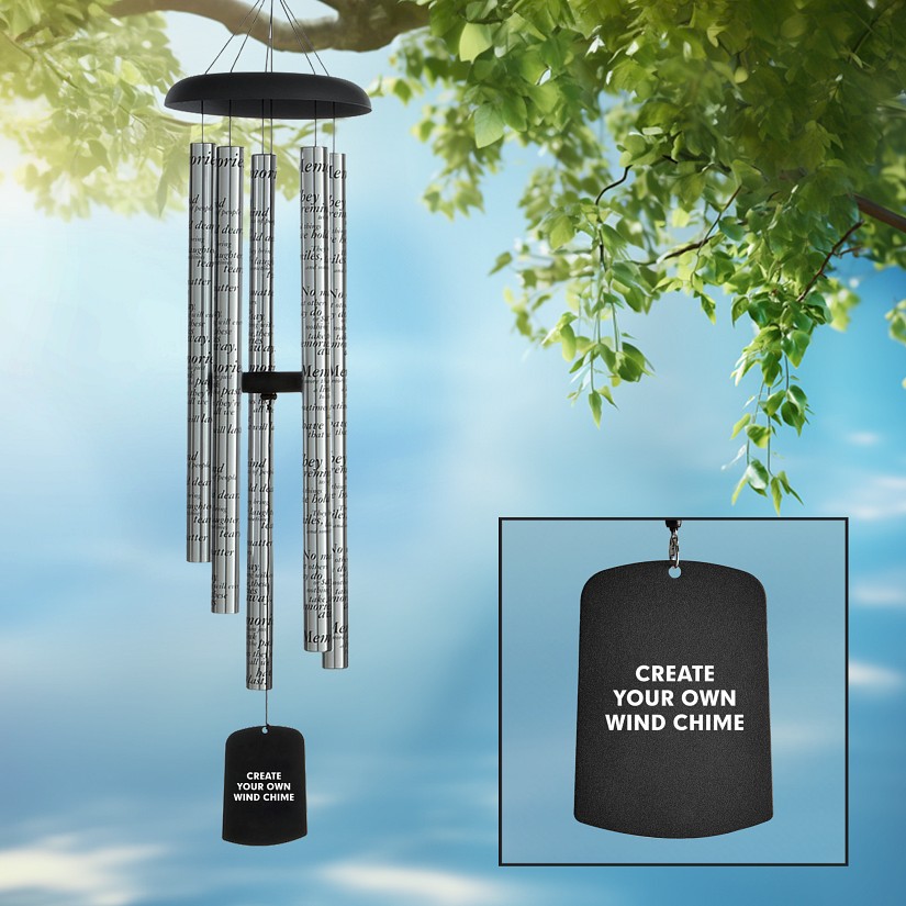 Make a grand statement with this custom wind chime. Customizable with your own message, or name, this wind chime is the perfect gift to add beauty and meaning to any outdoor space. It’s a gift that will sound as beautiful as it looks.