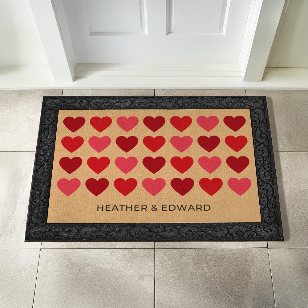 A pop of color and a whole lot of love! This heart-filled doormat combines playful design and personal flair to greet everyone in style.
