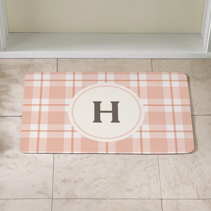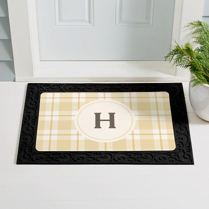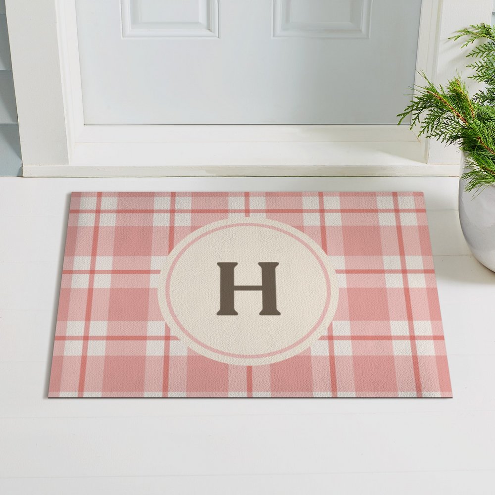 A cheerful welcome awaits! Soft plaid tones and a classic monogram combine to create a doormat that’s both charming and sophisticated.