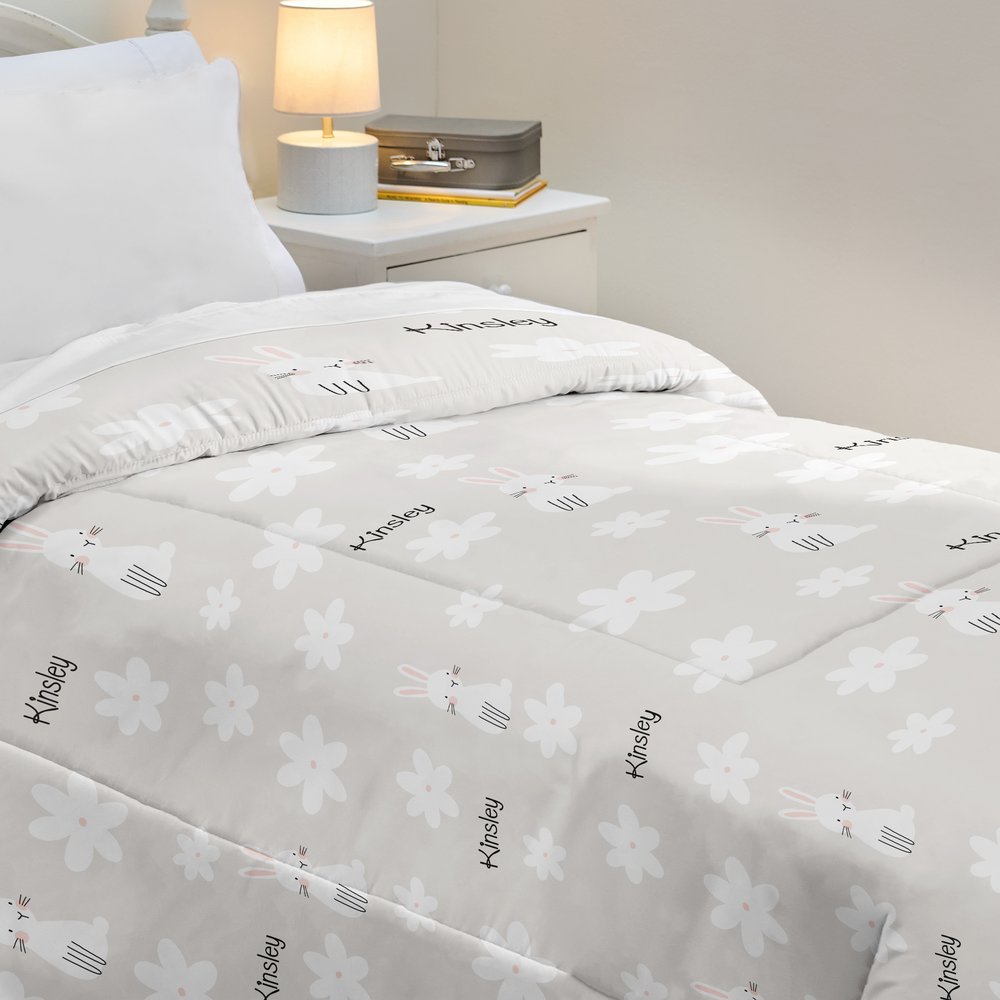 Featuring adorable bunnies frolicking in a serene spring landscape, this comforter is the perfect gift to add a playful touch to any bedroom. Cozy, cute, and ready for a springtime snooze!