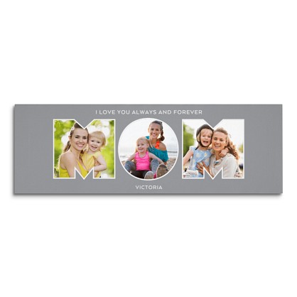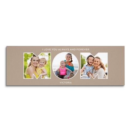 Favorite photos will be featured within the typography alongside your own personal message. Celebrate her love and warmth with this timeless custom canvas made just for her.