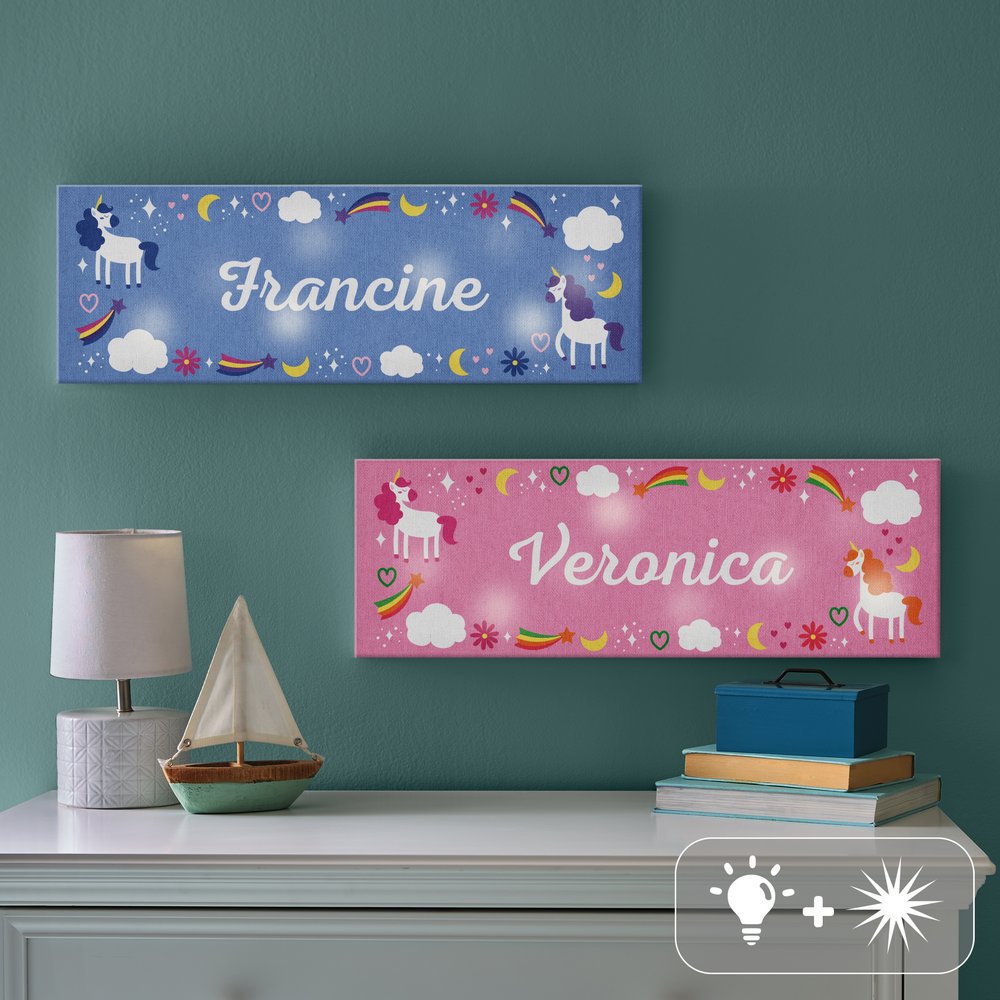 Transform any space into an enchanted wonderland with this personalized light-up unicorn sign. Featuring their name, this whimsical piece brings joy to bedrooms, playrooms or anywhere that needs a touch of sparkle.