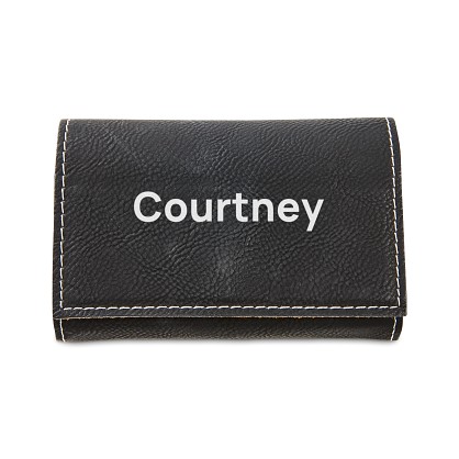- Leatherette case with magnetic snap closure holds 7 removable plastic pill cases