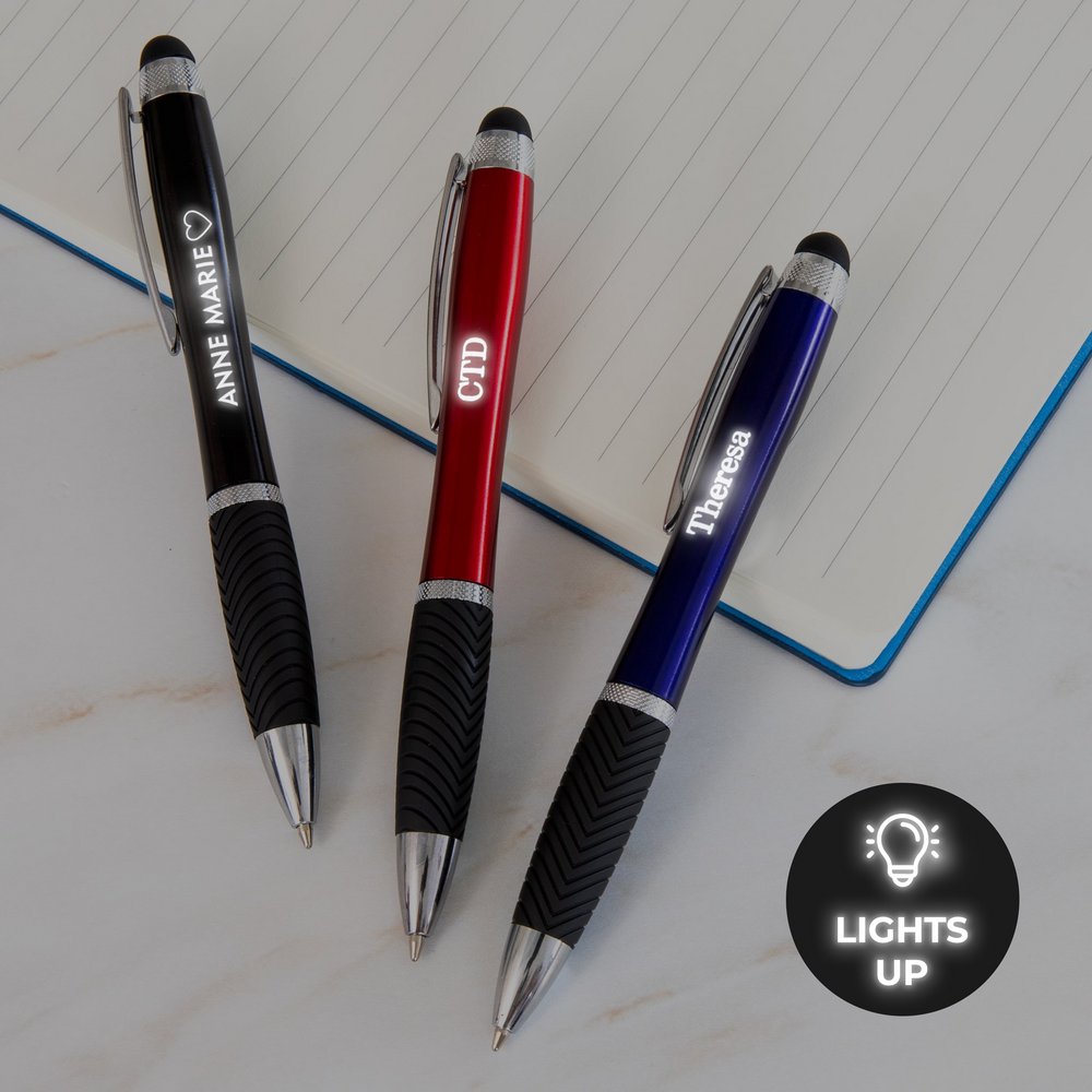 This fun twist-action pen does more than just write, it lights up! With a simple push, the barrel glows with your personalized message. A cool, clever gift that’s sure to bring a smile.
