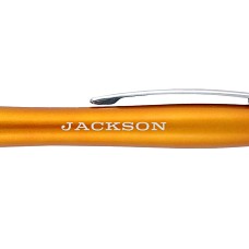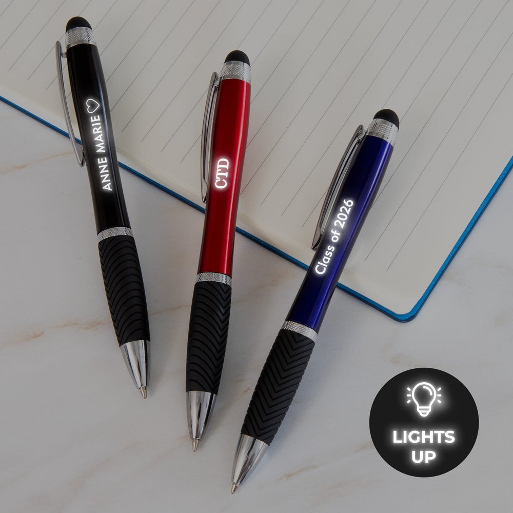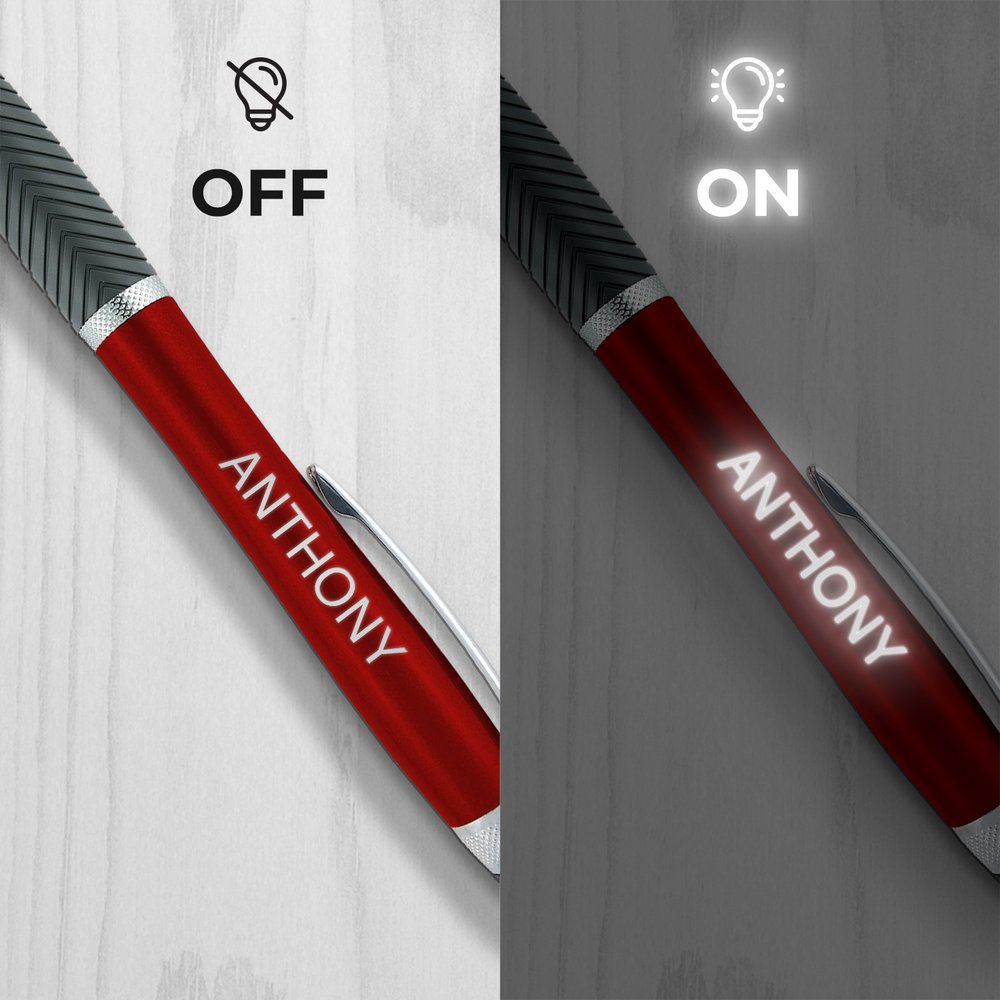 This fun twist-action pen does more than just write, it lights up! With a simple push, the barrel glows with your personalized message. A cool, clever gift that’s sure to bring a smile.