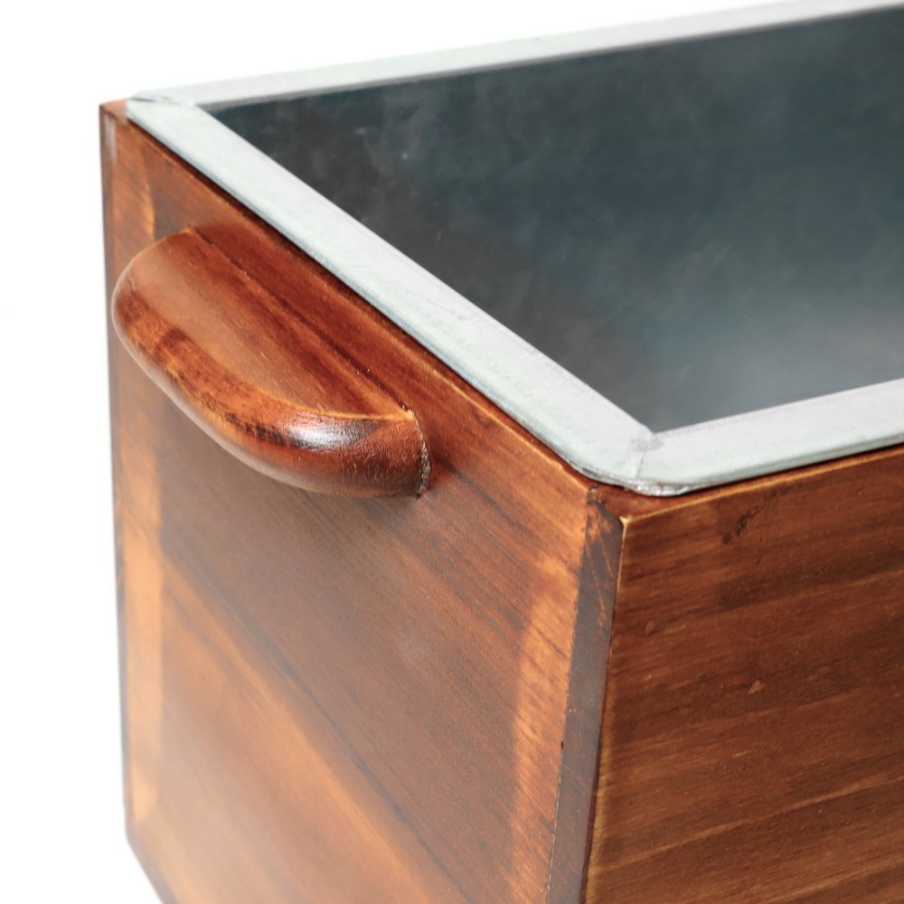 - Comes with a removable galvanized metal insert to protect the wood and keeps ice from quickly melting