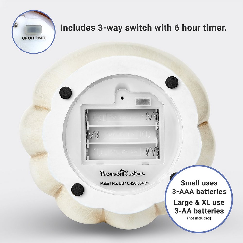 - Small pumpkins use 3 AAA batteries (not included), large and extra large pumpkins use 3 AA batteries (not included)