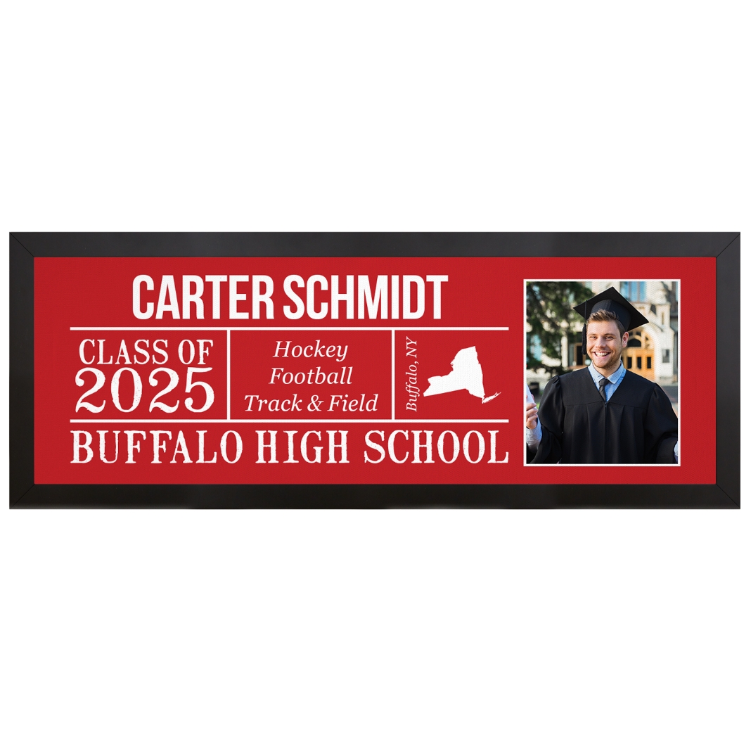 Hard work and dedication made this work of art possible. Celebrate your graduate’s big day with this keepsake canvas highlighting their achievements. A piece they will treasure wherever life takes them.