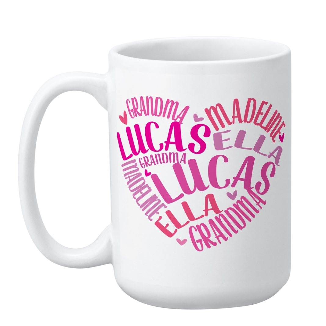 - Available in white 15 oz. or 11oz. black, white, navy blue, red, pink and light blue handle and interior
