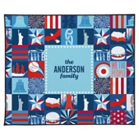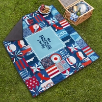 Enjoy an afternoon picnic with American pride. This picnic blanket Features a bold patriotic design and custom name personalization, it’s perfect for days at the park, family gatherings and year-round display.