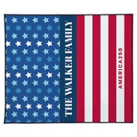 Bring American style outdoors with a personalized picnic blanket designed for sharing. The patriotic motif and custom name make it easy to spot and is uniquely yours. A thoughtful gift for summer outings, family events and weekend adventures.