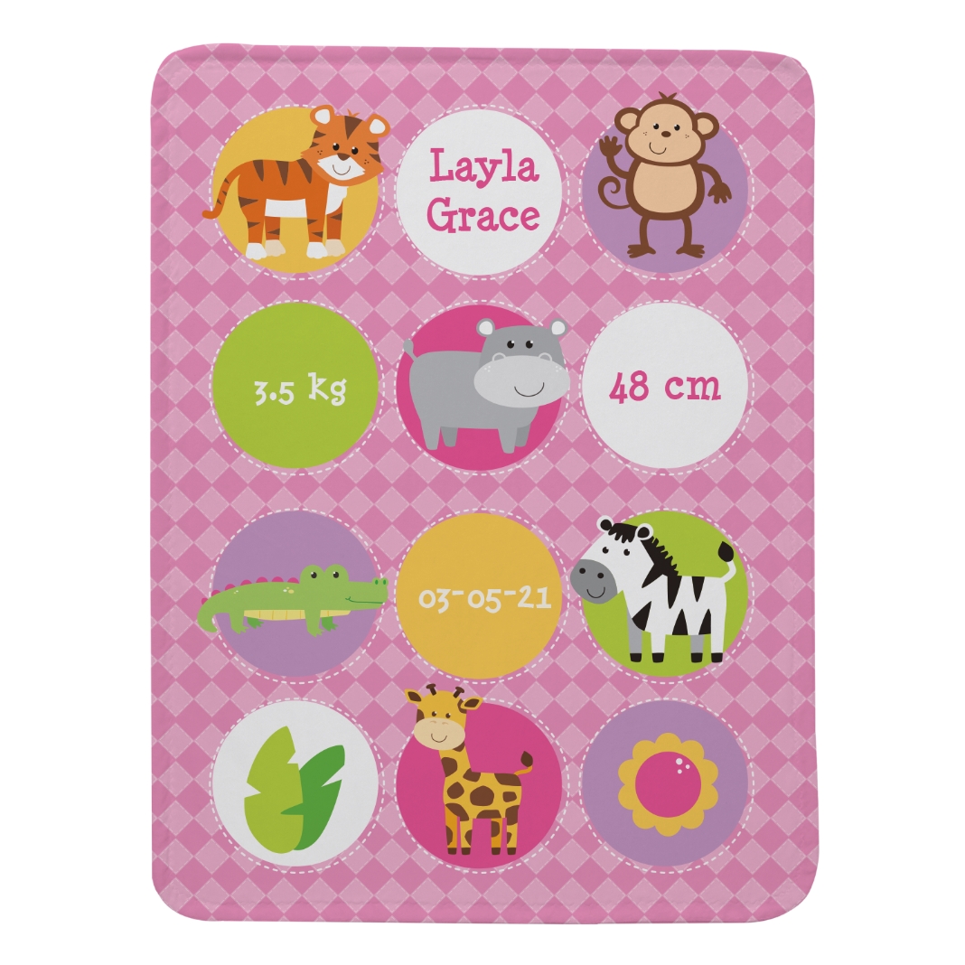Animals Birth Announcement Blanket - Pink