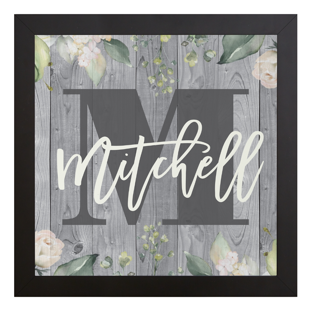 Barnwood Floral Name Framed Canvas - 11x11
