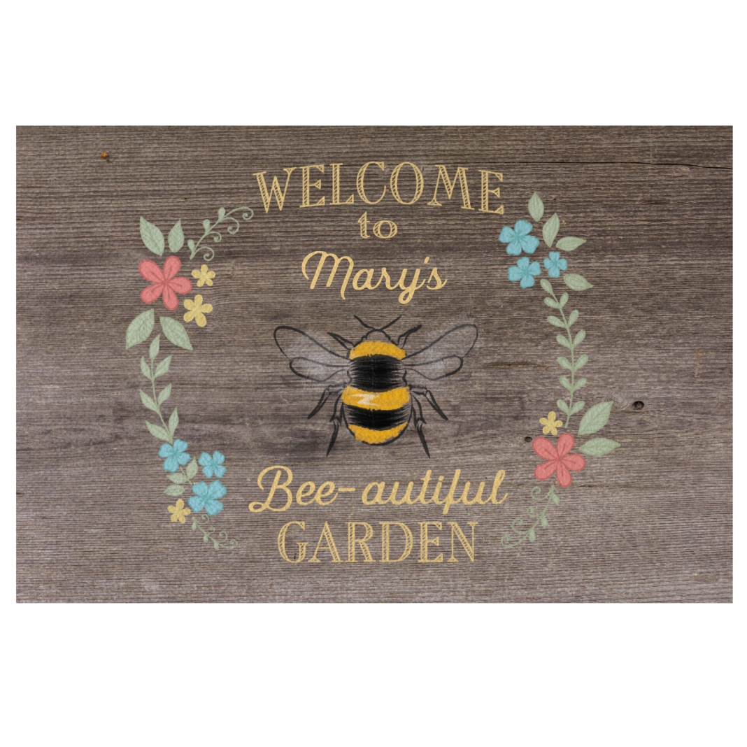 How does her garden grow? With lots of TLC—and help from honeybees! Let our doormat create a welcome folks will be buzzing about.
