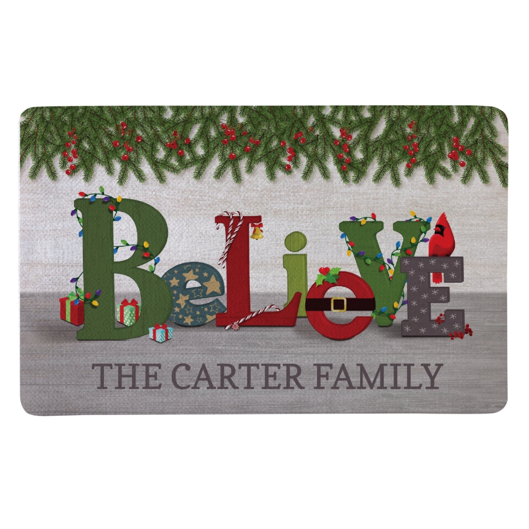 At this house, we believe in every magical holiday moment that brings family closer together. That's the message you'll send with this personalized doormat. Let your friends and family know they're about to step into the magic of the holidays when they walk through your door this Christmas. Exclusively from Personal Creations.