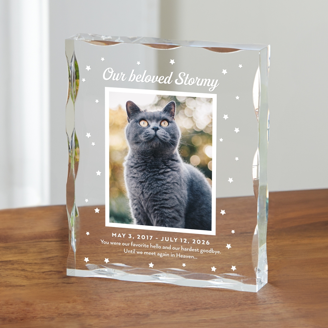 Memorialize a beloved pet who has crossed the rainbow bridge with this personalized acrylic block. It offers a picture-perfect way to honor the bond that will never be broken.
