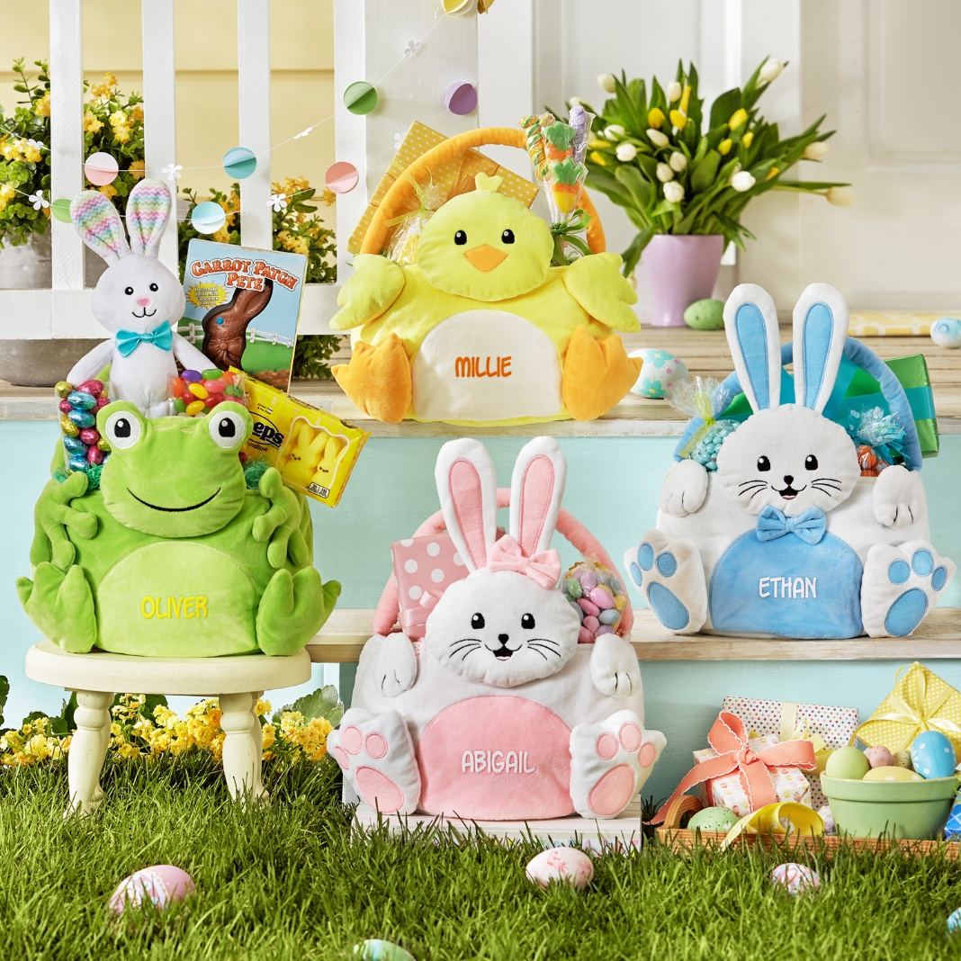 These plush pals will put their best foot forward this Easter. Your funny little bunnies will love the adorable characters and all your goodies inside.