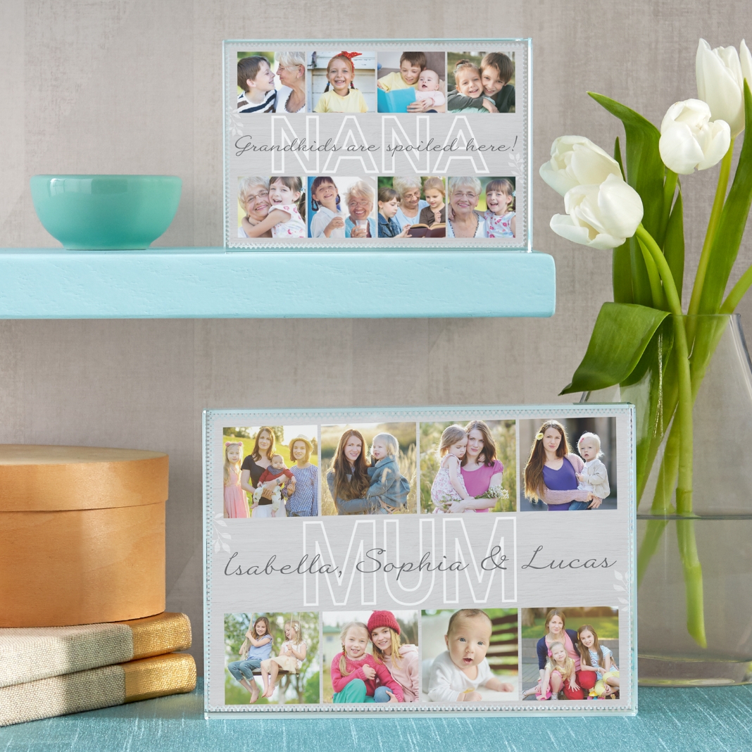 - Personalise with any 8 photos, title up to 12 characters and any message up to 40 characters