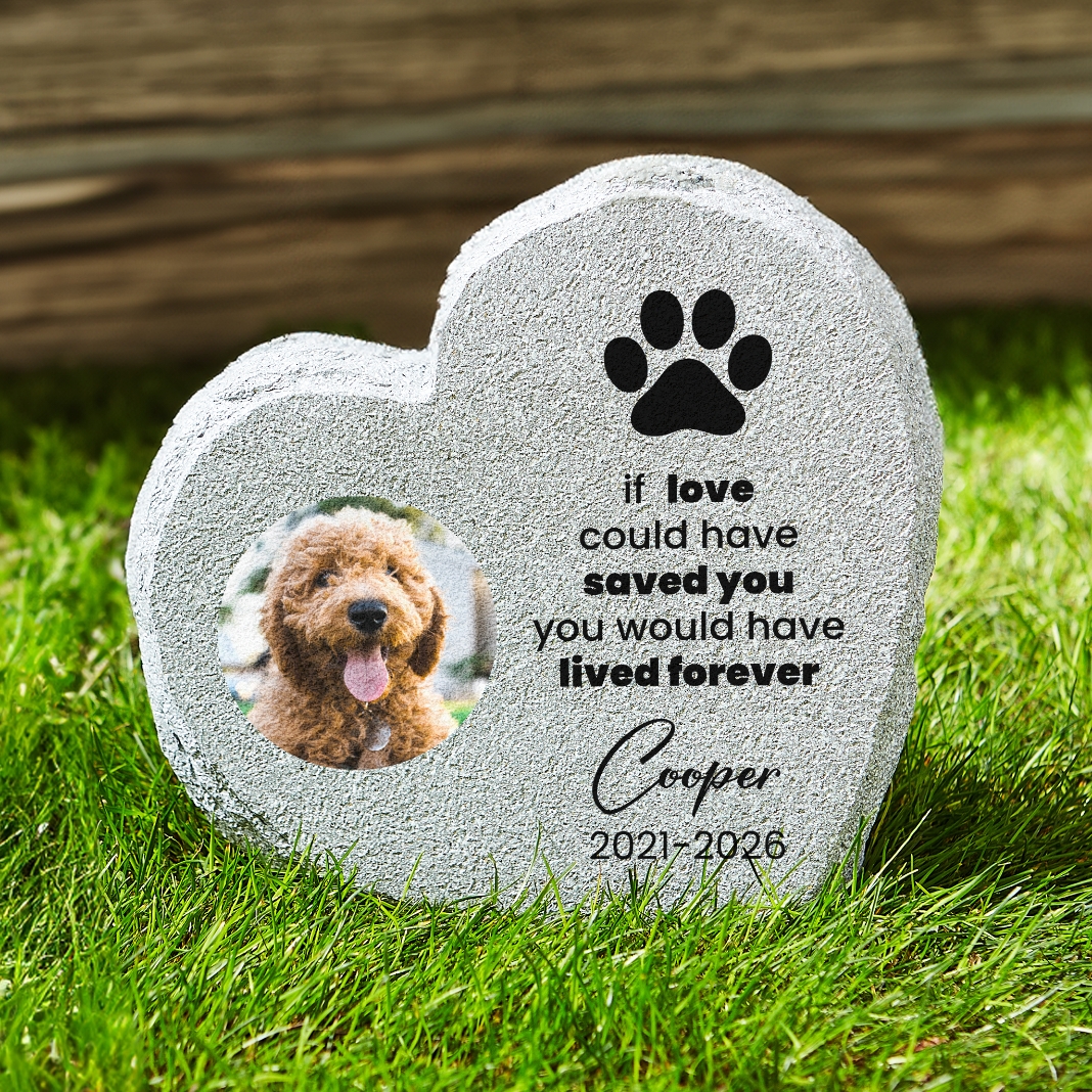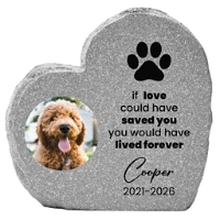 Ensure a cherished pet is lovingly remembered with this personalized garden stone. This heart-shaped memorial will stand as a tribute to time spent together and forever love.