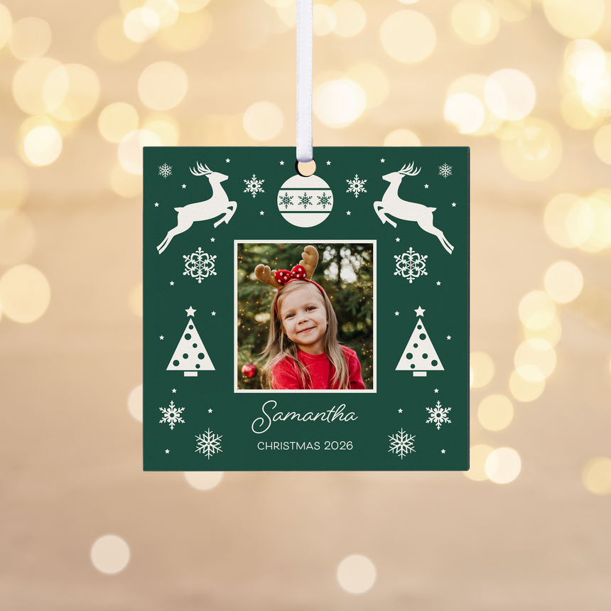 Add a little flair to the tree with this photo ornament. Add the perfect mix of festive frills and favorite faces to any tree.