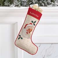 Sleigh the stocking game! This jolly Santa stocking brings festive flair to your mantel and it's ready to be filled with cheer, treats and Christmas morning magic.