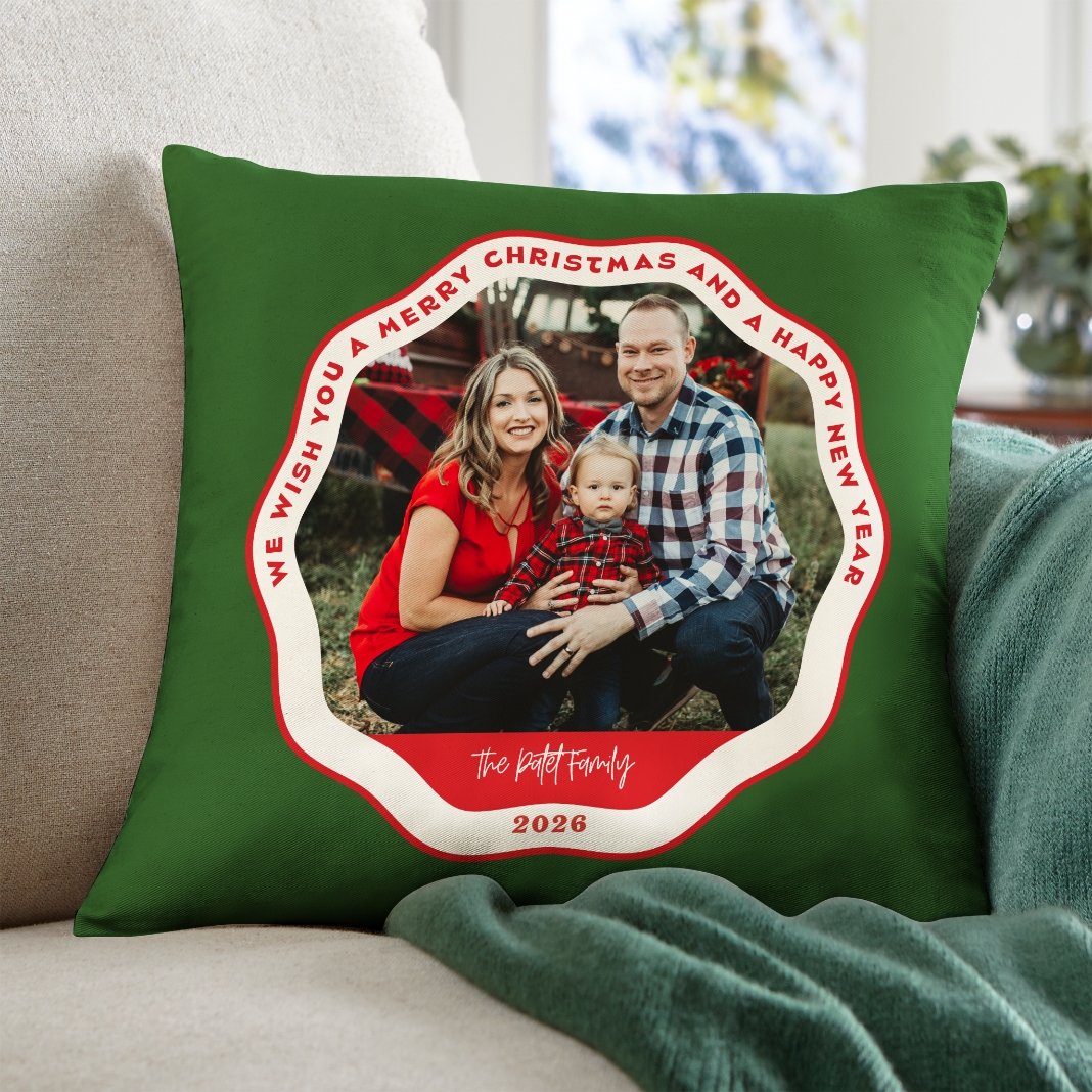 Bring some picture-perfect ho-ho-ho into your Christmas décor! Make a treasured family photo the centerpiece of this holiday-themed throw pillow.