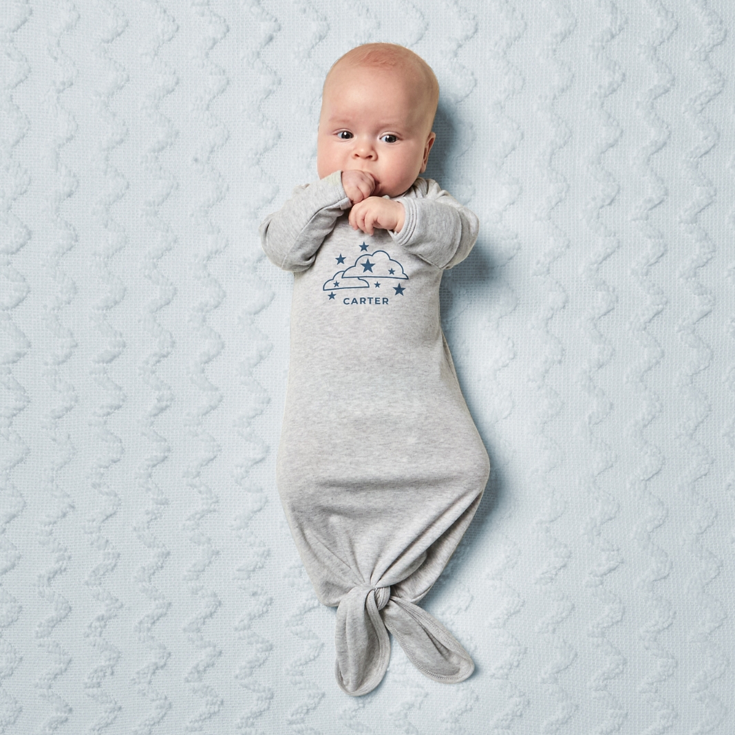 Clouds and Stars Baby Knotted Gown