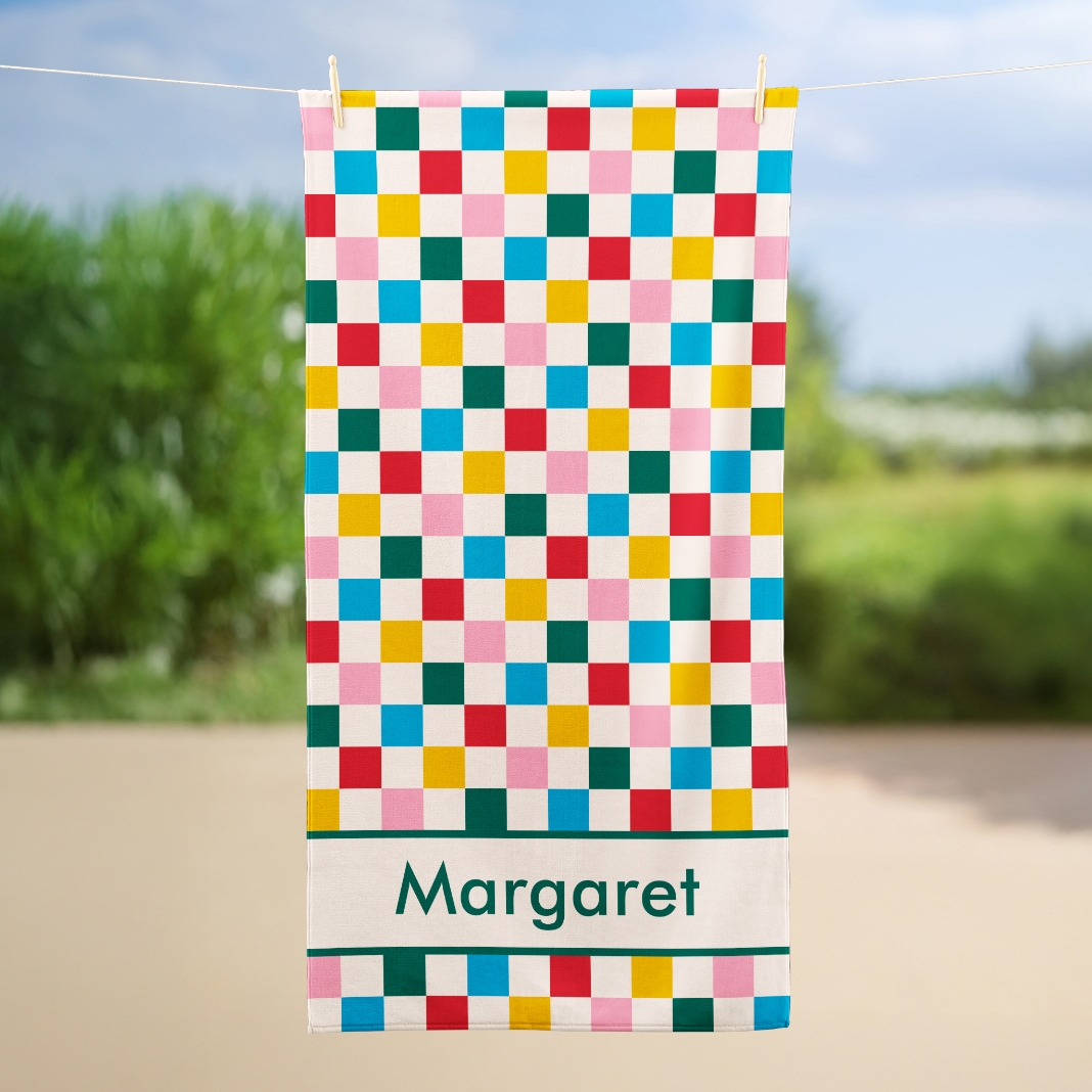 Bring bold vibes to the beach with this fun towel. Soft and snuggly, its colorful checkerboard design turns every sandy day into a playful splash of color.