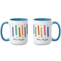 - Available in 15 oz. or 11 oz. with a black, white, navy blue, red, pink or light blue handle and interior