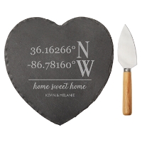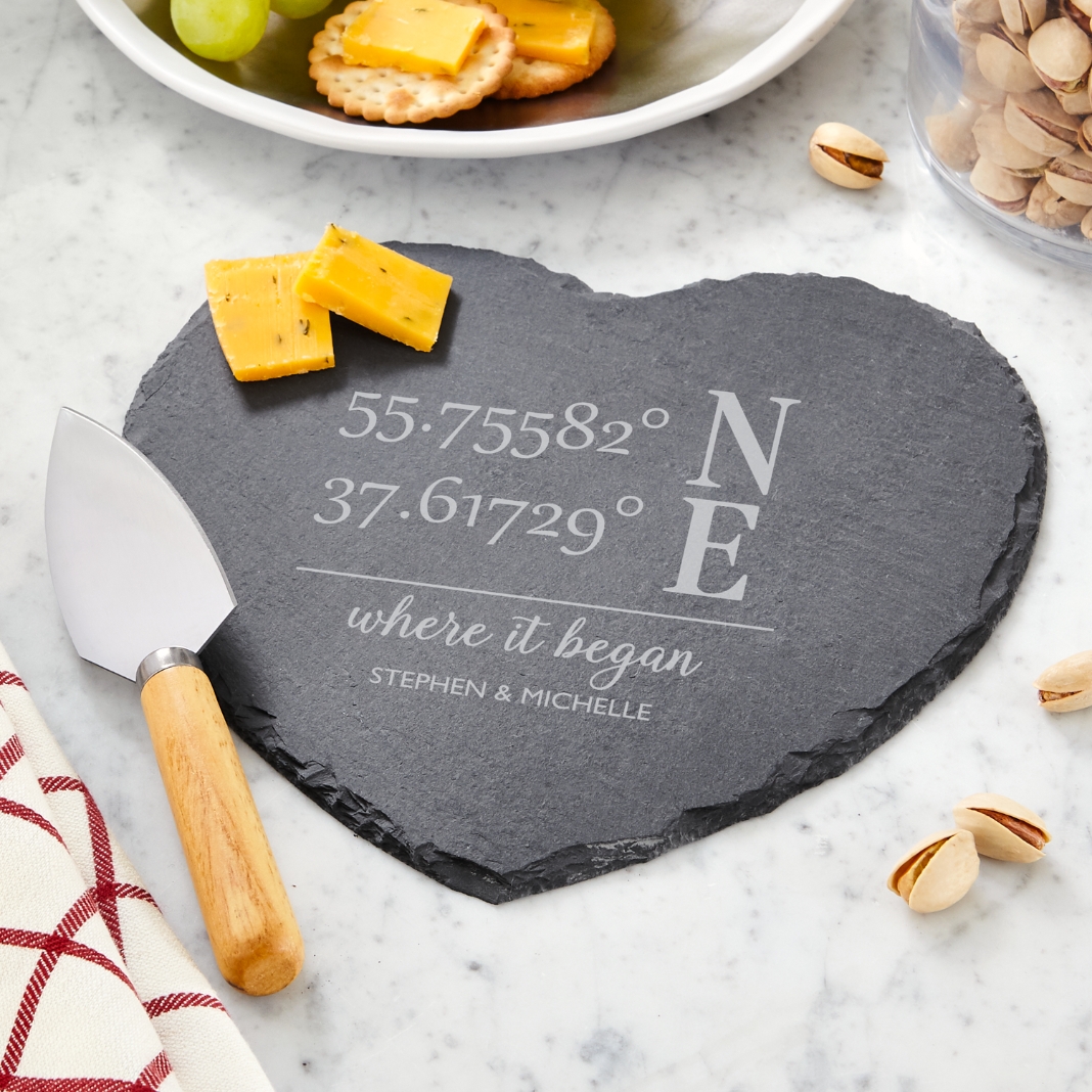 It’s abundantly clear that love lives here. This charming slate server maps out an important location in this couple’s backstory. Perfect for cheese, charcuterie, petit fours and more!