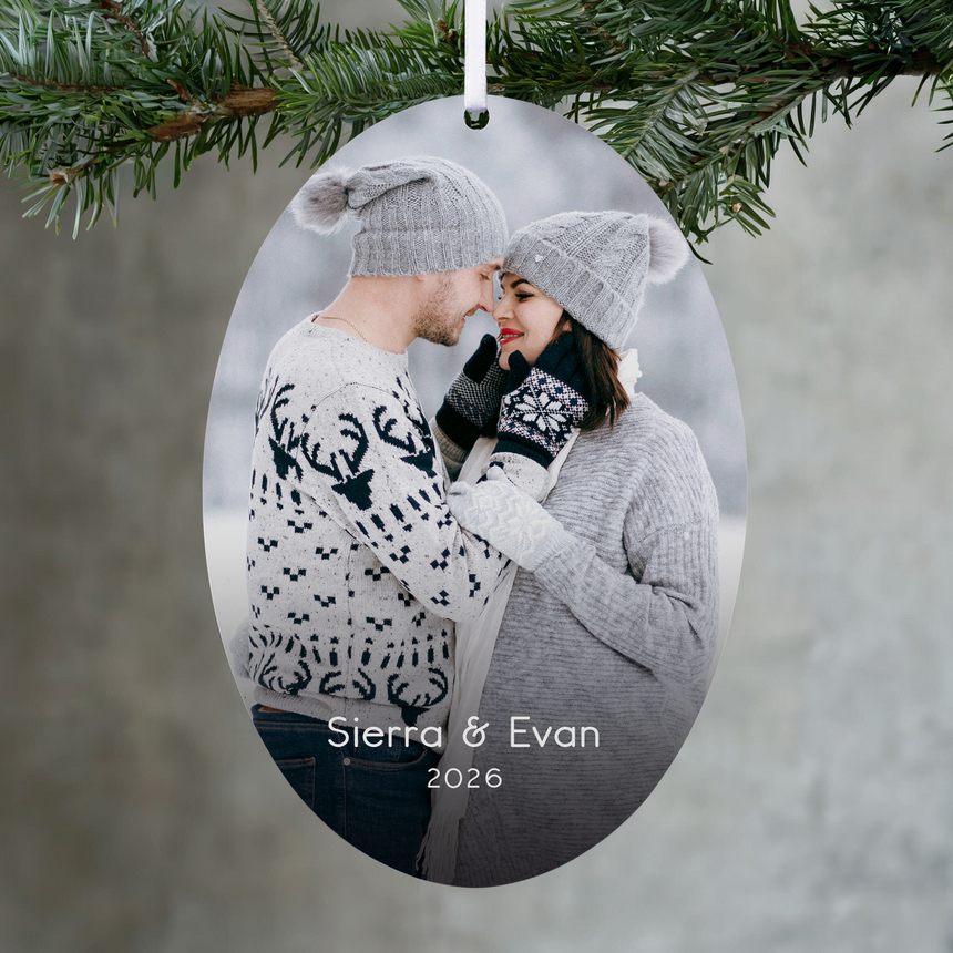Sleek and timeless, this ornament features your favorite photo front and center, making it a stylish and sentimental addition to your holiday decor. Ideal for showcasing cherished moments that deserve a spot in the seasonal spotlight.