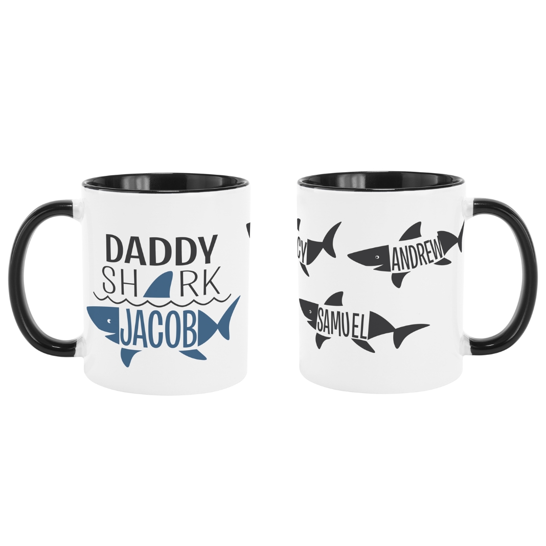 - Personalize with any title up to 12 characters, name in the big shark up to 10 characters and up to 12 little sharks with names up to 10 characters each