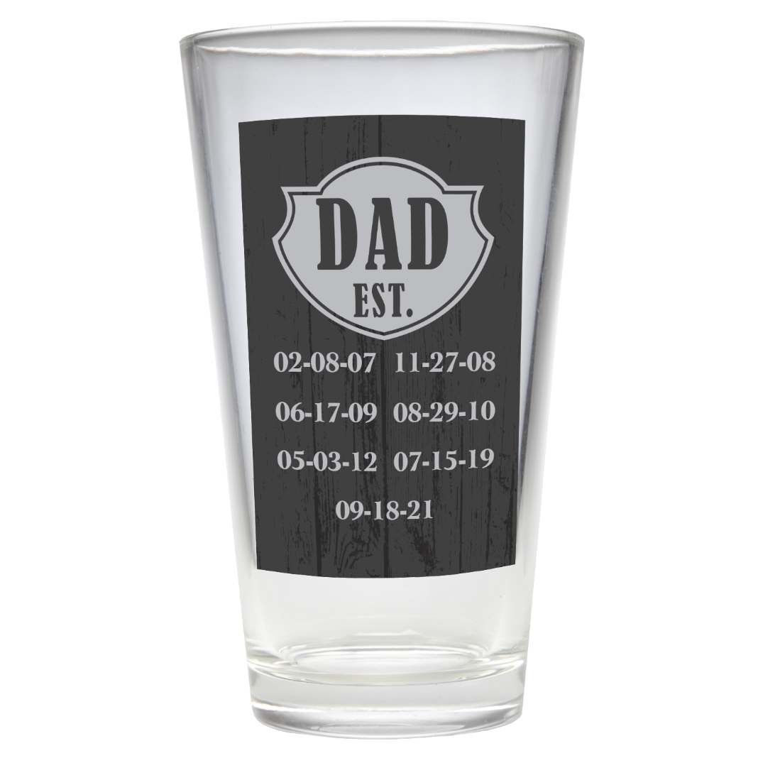 Make his happy hour even more joyful by serving his suds in a Pint Beer glass celebrating the dates he became a father, grandfather or uncle.