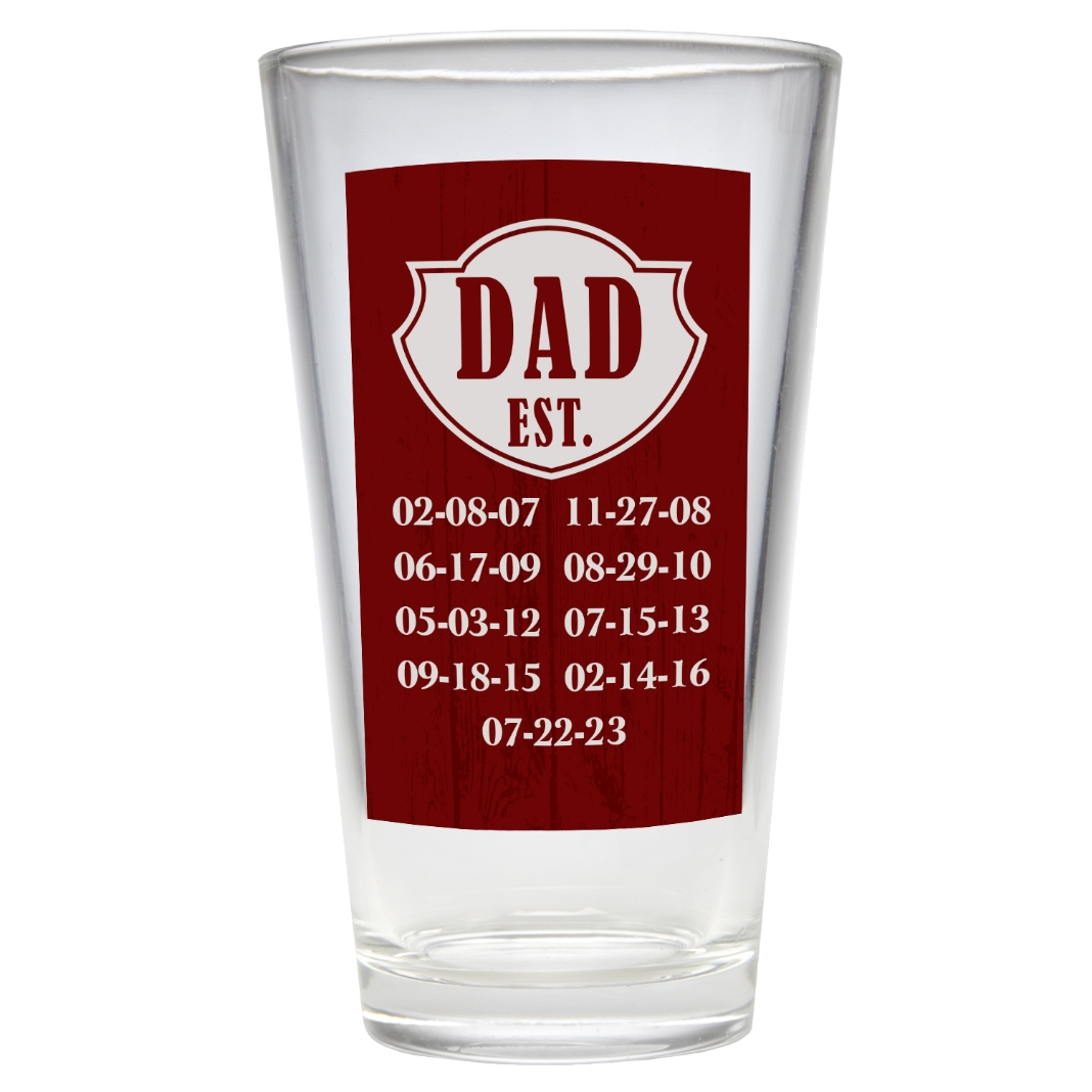 Make his happy hour even more joyful by serving his suds in a Pint Beer glass celebrating the dates he became a father, grandfather or uncle.