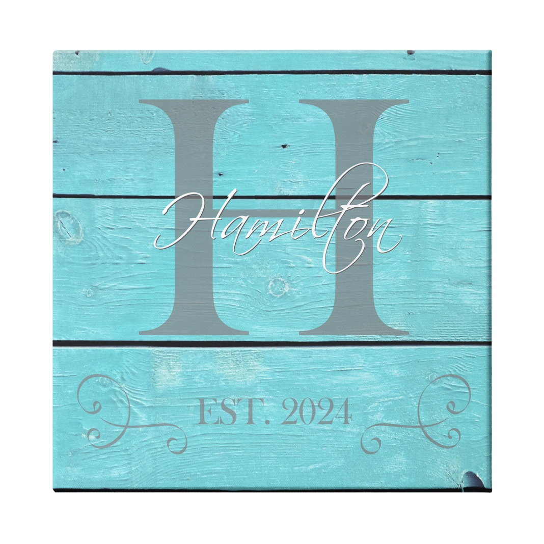 Family Initial & Name Canvas - 16x16 Teal-Unframed