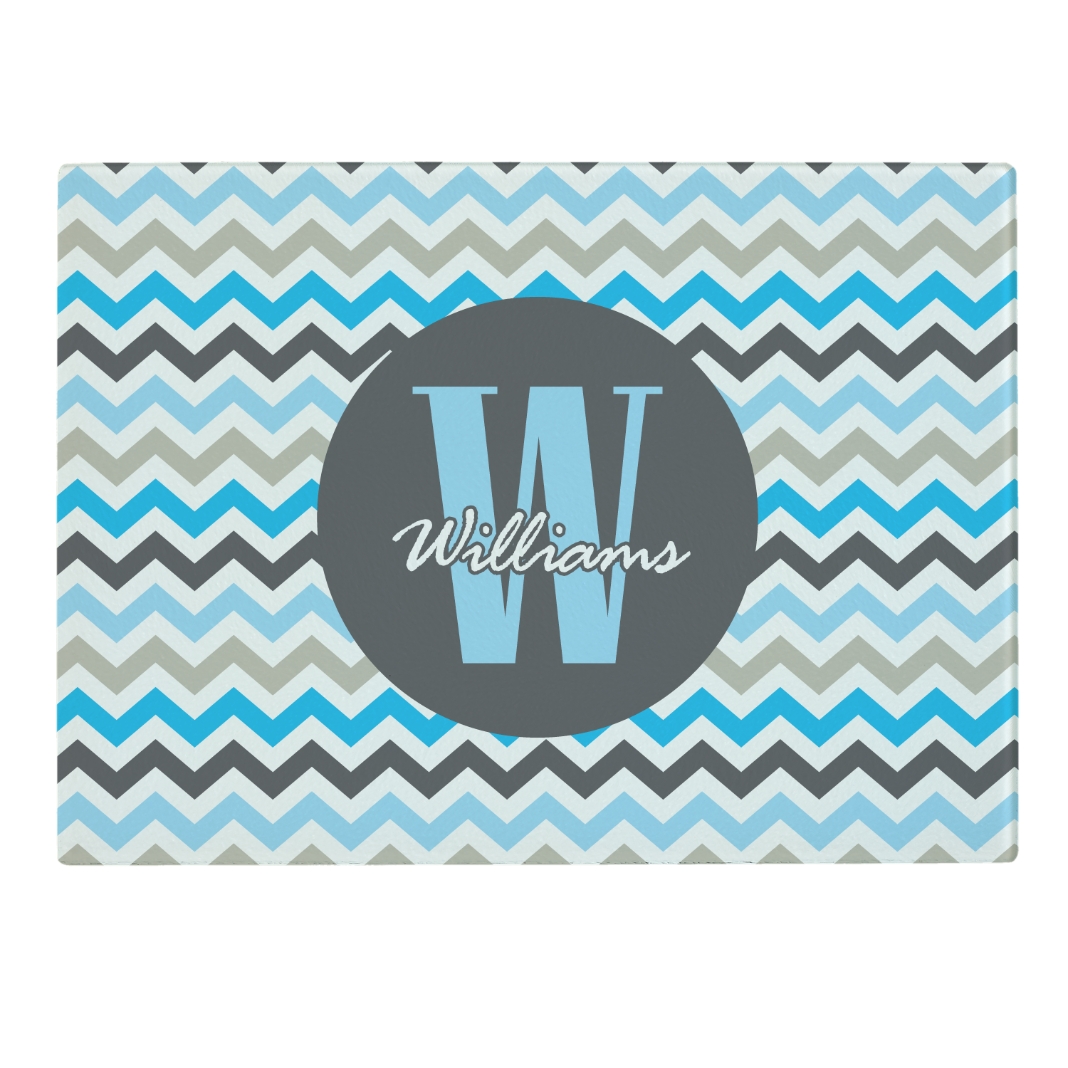 Family Recipe Glass Cutting Boards - Blue Chevron