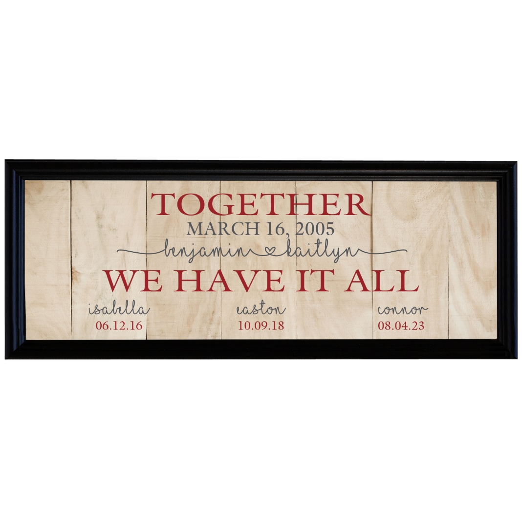 - Personalize with any title up to 20 characters, date, 2 names up to 10 characters each (heart will always appear between names), second title up to 20 characters and 1 to 4 additional names/dates