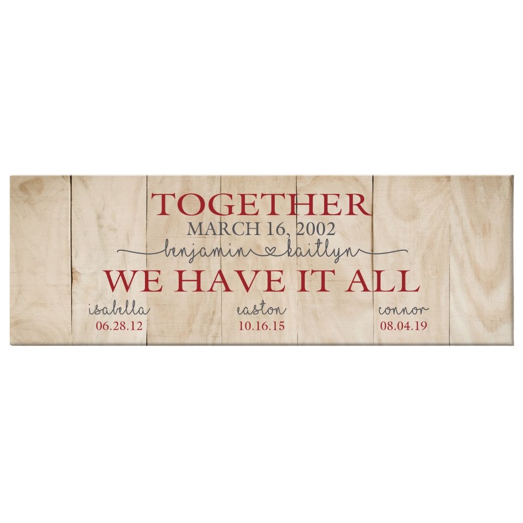 - Personalize with any title up to 20 characters, date, 2 names up to 10 characters each (heart will always appear between names), second title up to 20 characters and 1 to 4 additional names/dates
