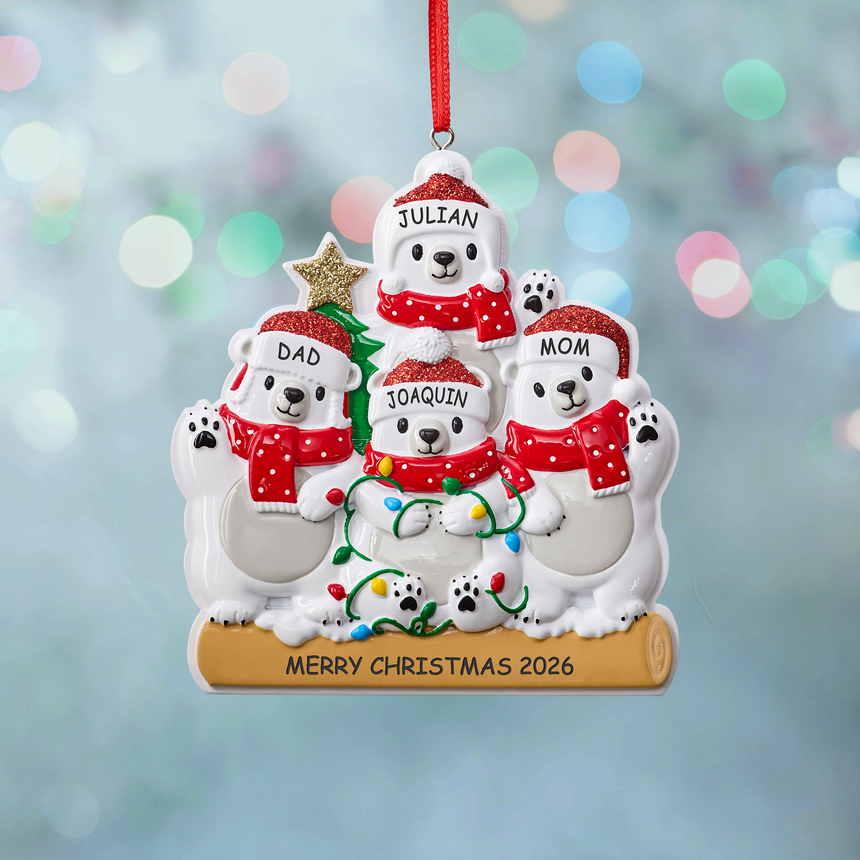 We can "bearly" contain our excitement! This adorable Christmas ornament is ideal for adding a whimsical family portrait to your Christmas tree.