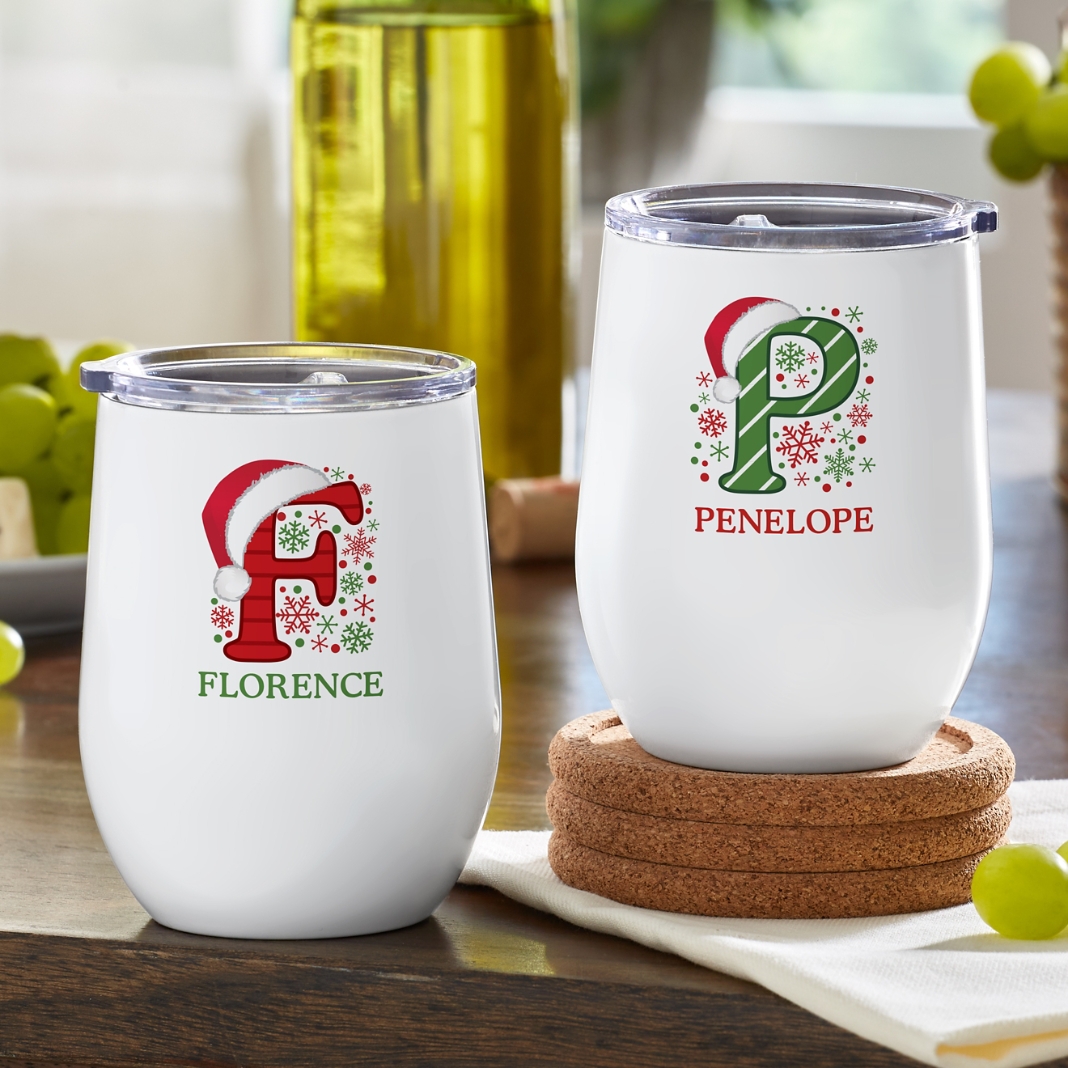 Sip in holiday style with a tumbler that keeps spirits bright and beverages just right. Add a name for a gift that’s as festive as it is functional.