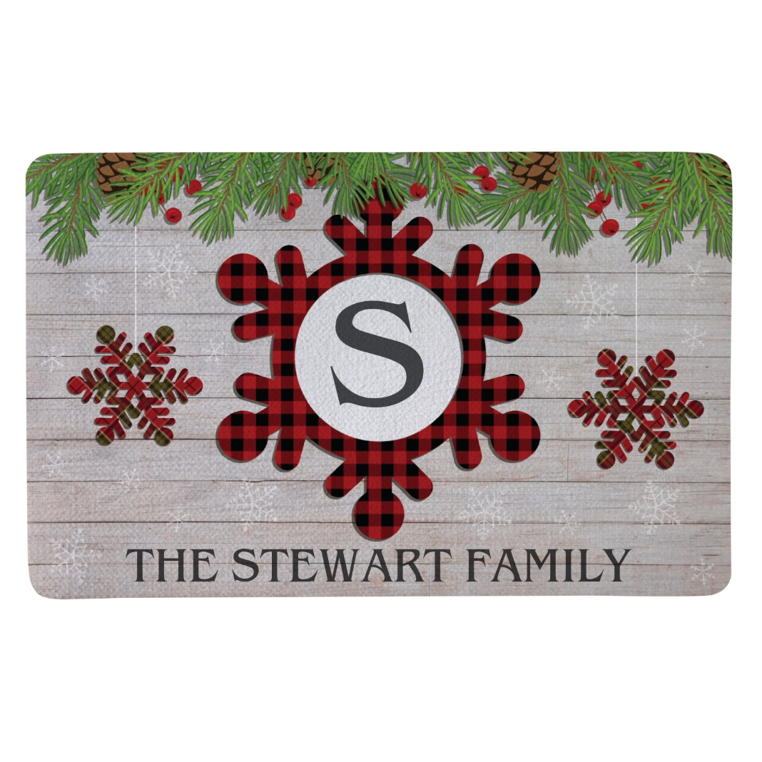 Festive Plaid Snowflake Initial Doormat- 17x27