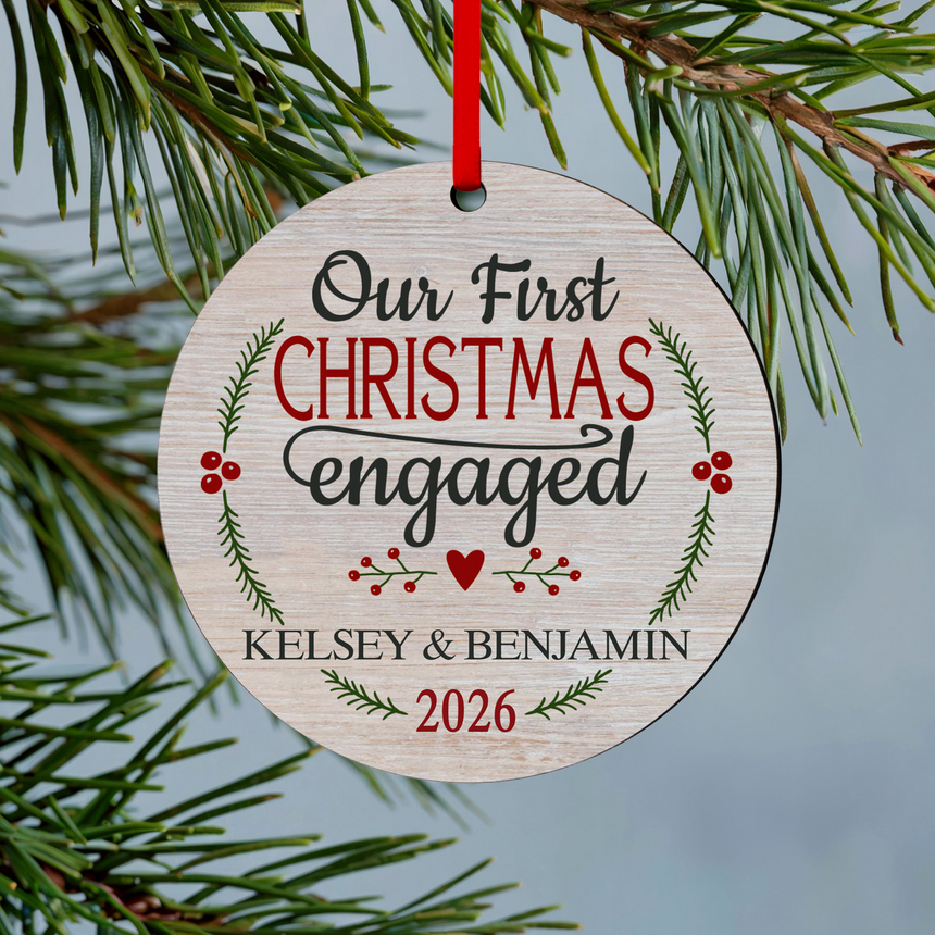 First Christmas Engaged Round Ornament