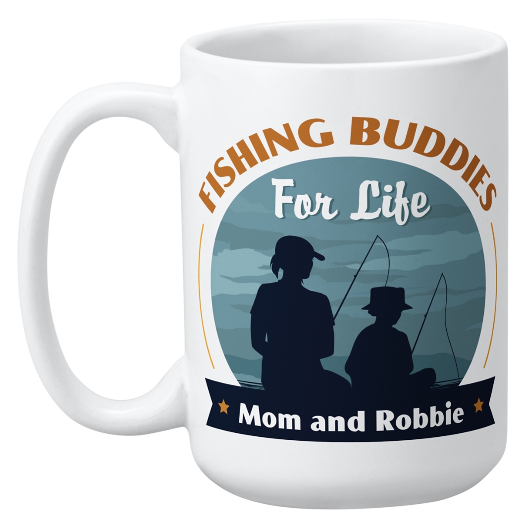 Fishing Buddies Mug - Woman/Boy - 15 oz - White
