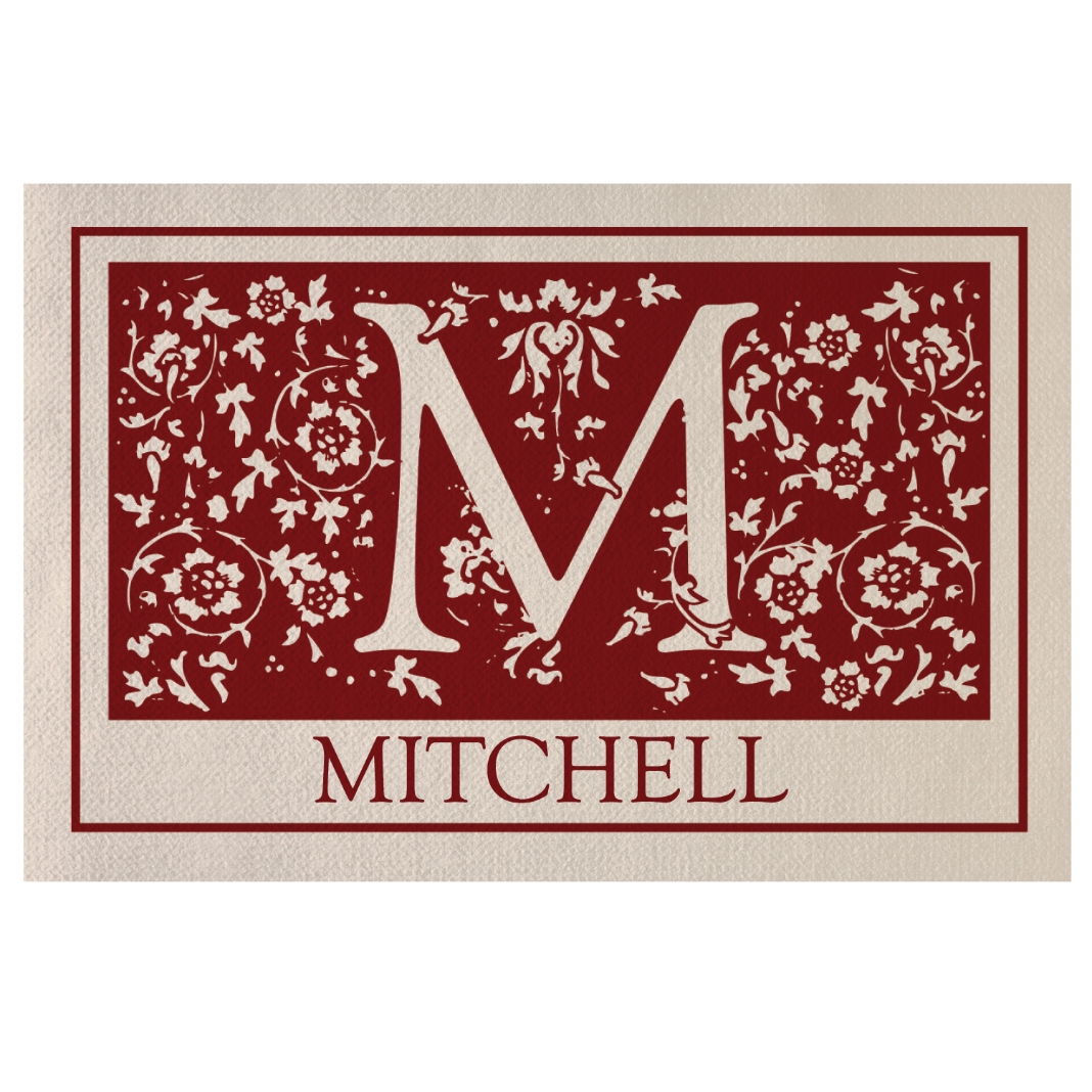 Floral Initial Doormat - Burgundy - 24x36