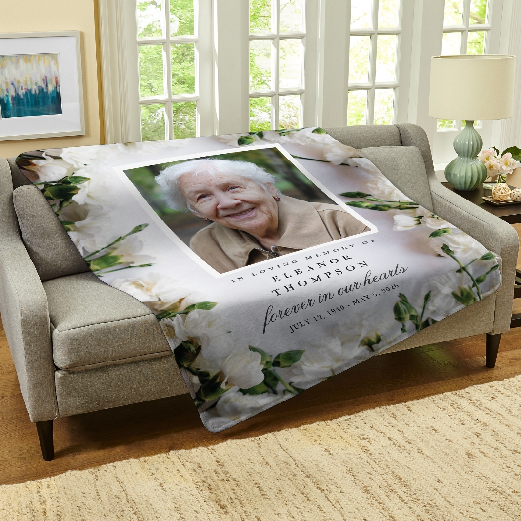 Floral Memories Sympathy Photo Plush Blanket