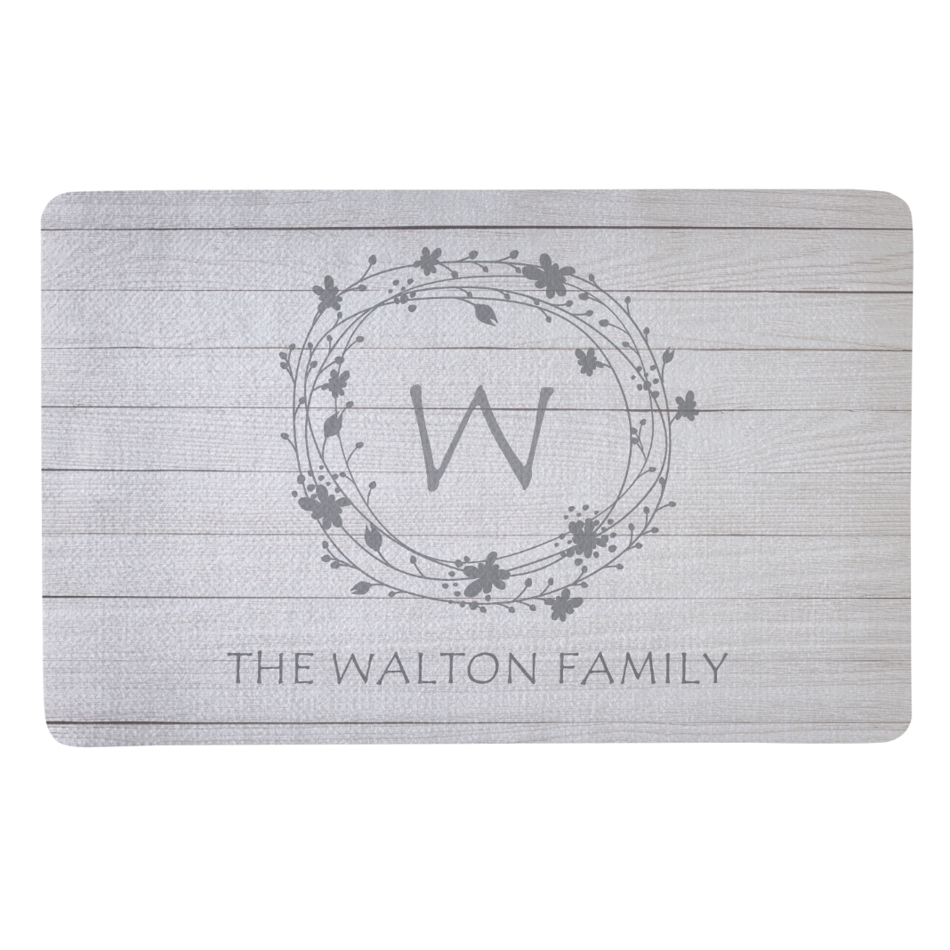 Floral Wreath Doormat-Gray-17x27