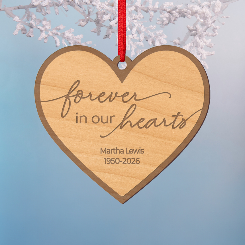 Forever in Our Hearts Memorial Laser Cut Wood Ornament
