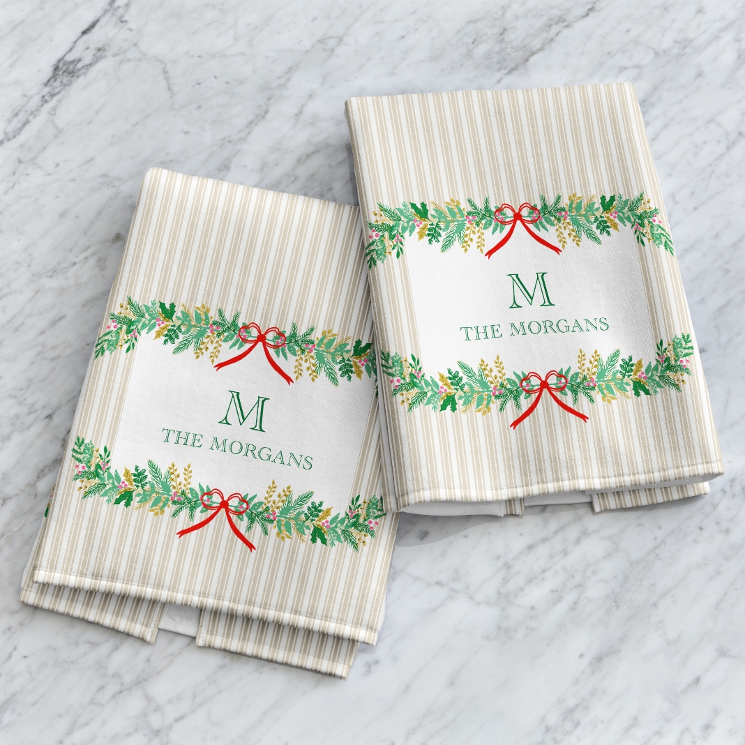 Classic holiday greenery never goes out of style. This garland-adorned kitchen towel adds seasonal charm to cooking and baking, making it a great gift for anyone who spends time in the kitchen during the holidays.