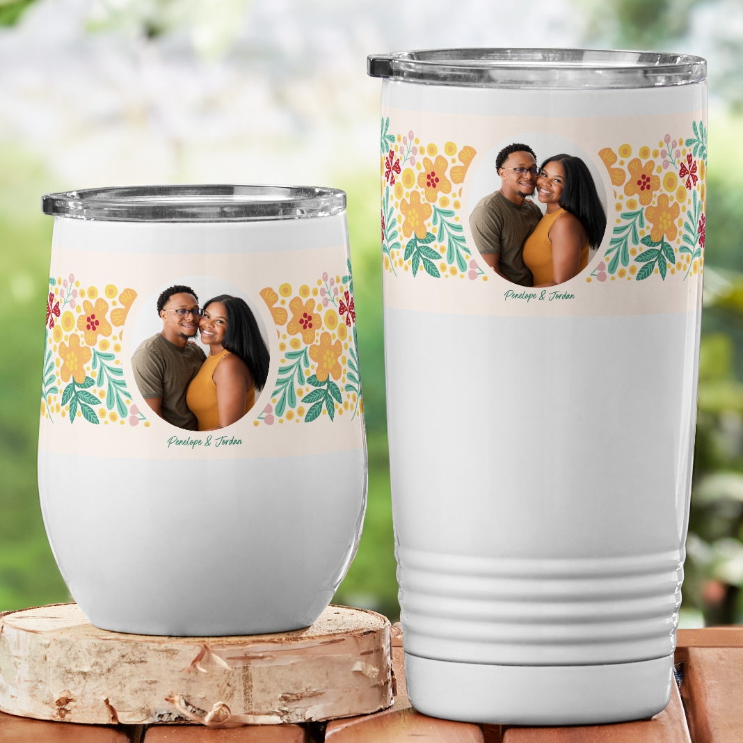 Whether it’s your daily commute, a cozy morning at home or a picnic in the park, this floral photo insulated tumbler delivers convenience and personal style in equal measure.